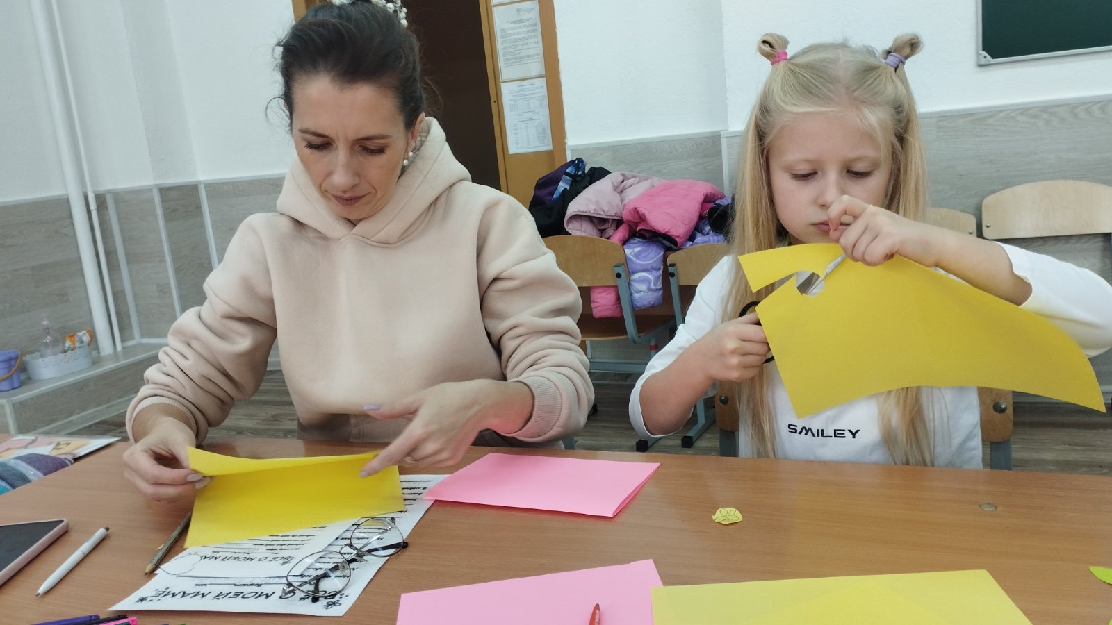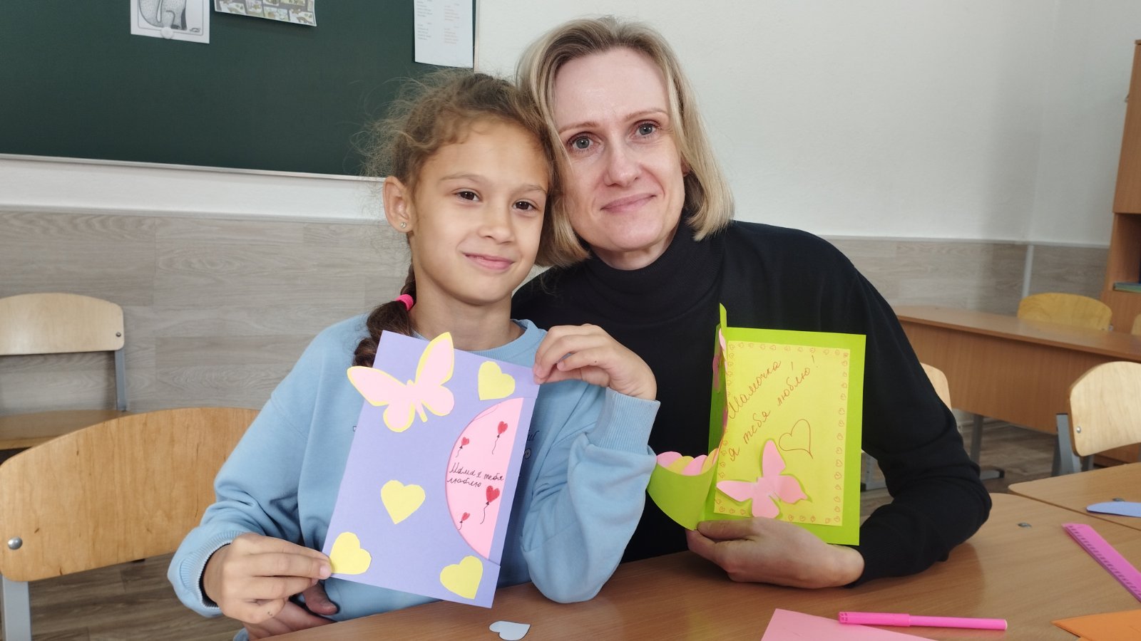 Субботним утром учащиеся 2в класса вместе со своими мамами побывали на мастер-классе " С любовью к маме". Участники сделали поздравительные открытки ко Дню матери.