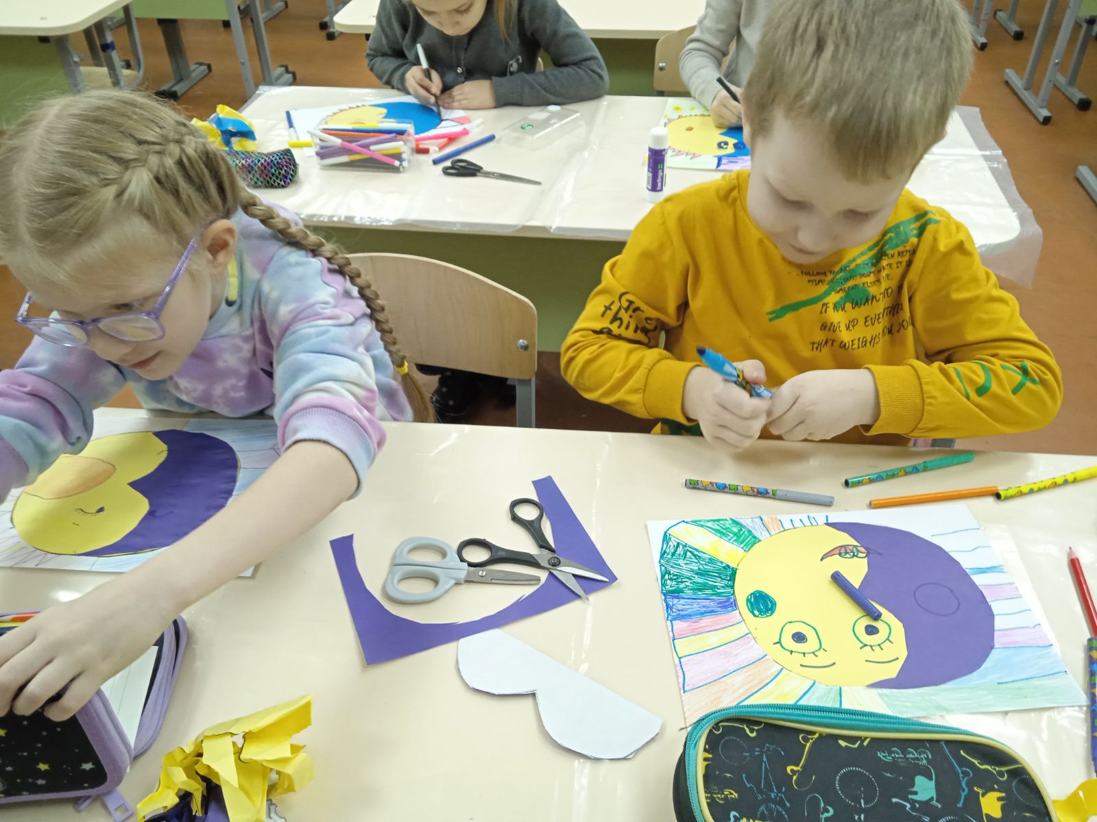 На этот сложный вопрос искали ответы учащиеся 1 «Б» класса, став участниками мероприятия, которое подготовила библиотека гимназии. Ребята познакомились с произведением В.В.Маяковского, узнали, что такое пословица, и как научиться разгадывать их тайный смысл; ответили на вопросы литературной викторины, а в заключение мероприятия изготовили работу в смешанной технике (аппликация/рисунок) «День-ночь».
