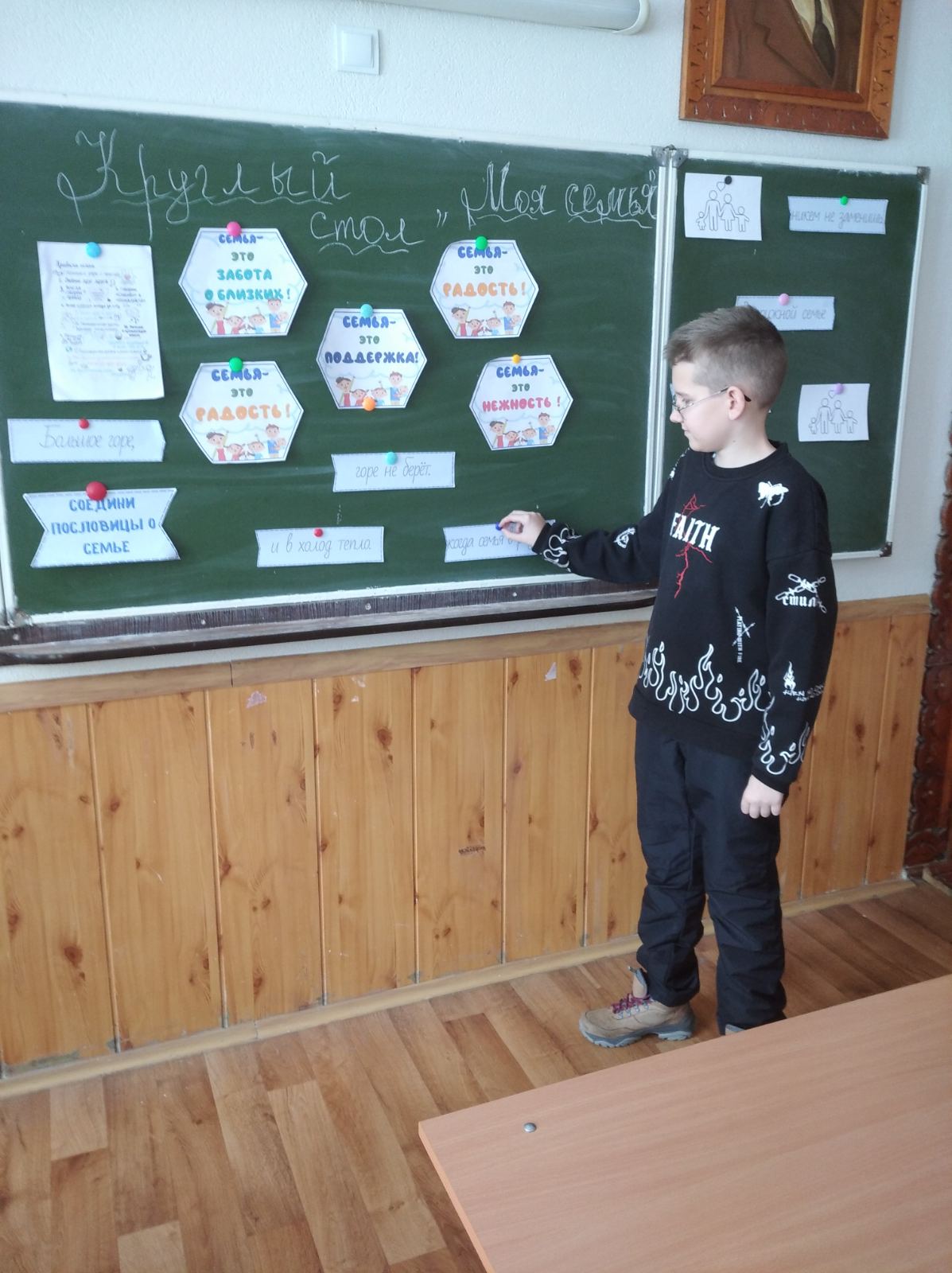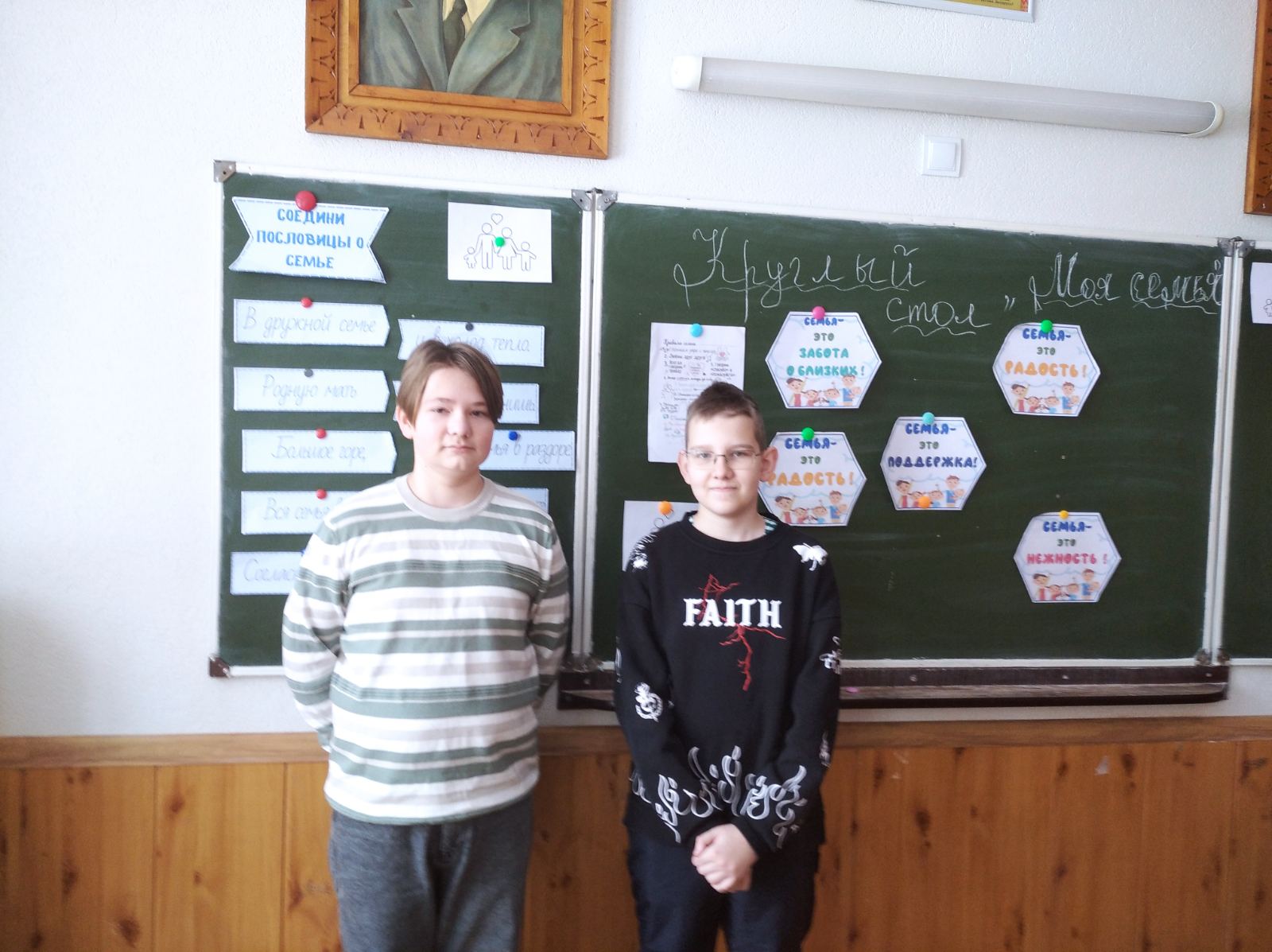 В субботу, 24 января, в 7"Г" классе прошло мероприятие "Моя семья". Ребята рассказывали о том, какие правила существуют в их семьях для того, чтобы семья была дружная и крепкая. В итоге была выработана своеобразная общая памятка "Правила семьи". Также ребята соединяли пословицы о семье, читали стихи. В общем, мероприятие прошло с пользой для ребят.