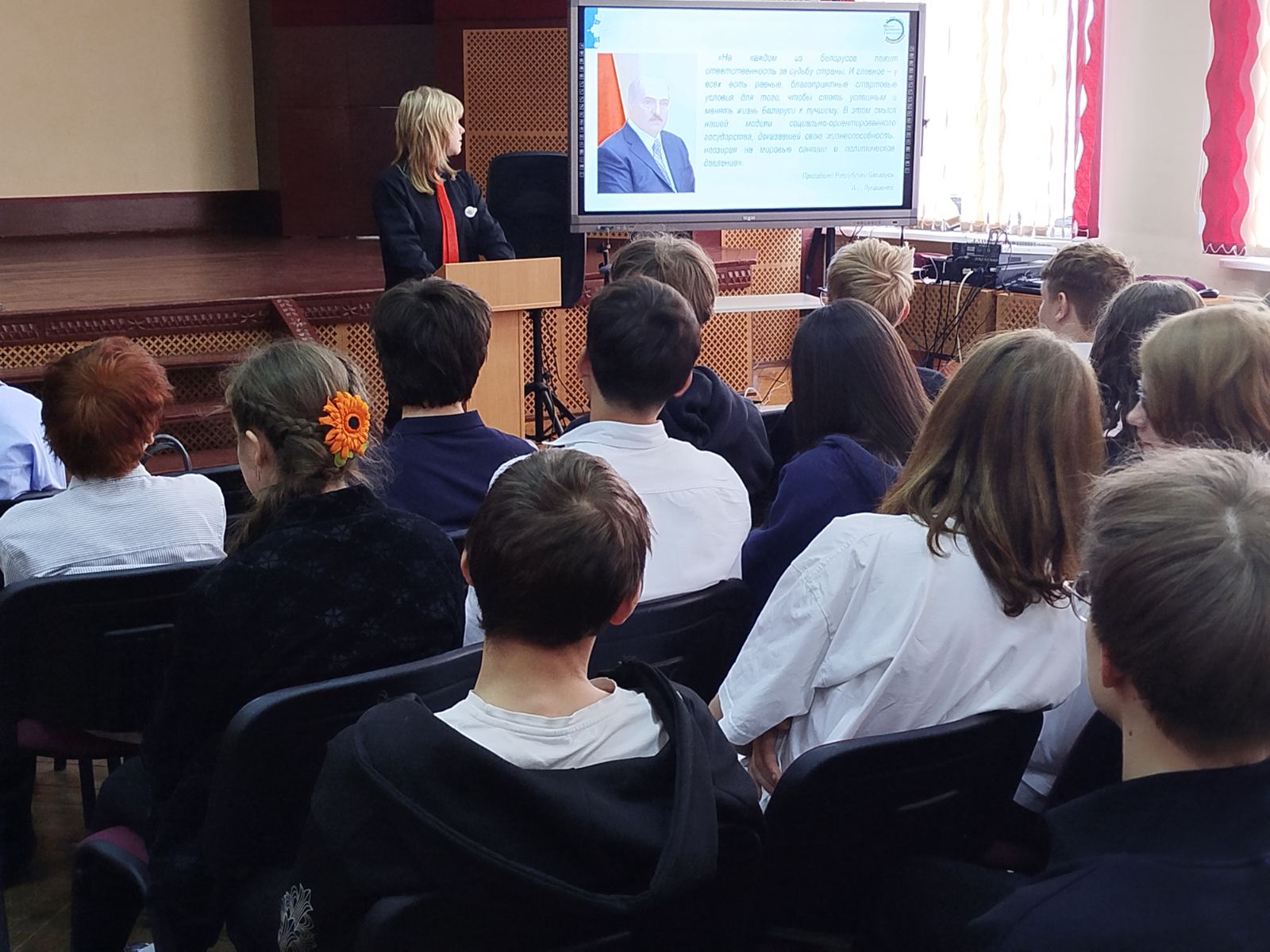 23 апреля состоялась очередная встреча в рамках республиканского проекта " ШАГ". Учащиеся 9х классов узнали о высокотехнологичному из достижениях Республики Беларусь в экономике и науке, об инновациях и стартапах, о развитии сельского хозяйства, о цифровизации. Врач детской поликлиники 4 , Фицуро Виктория Федоровна, рассказала учащимся о высоком уровне медицины в стране приведя следующие факты: