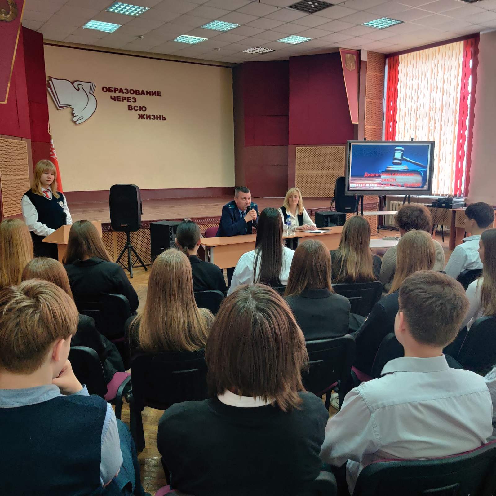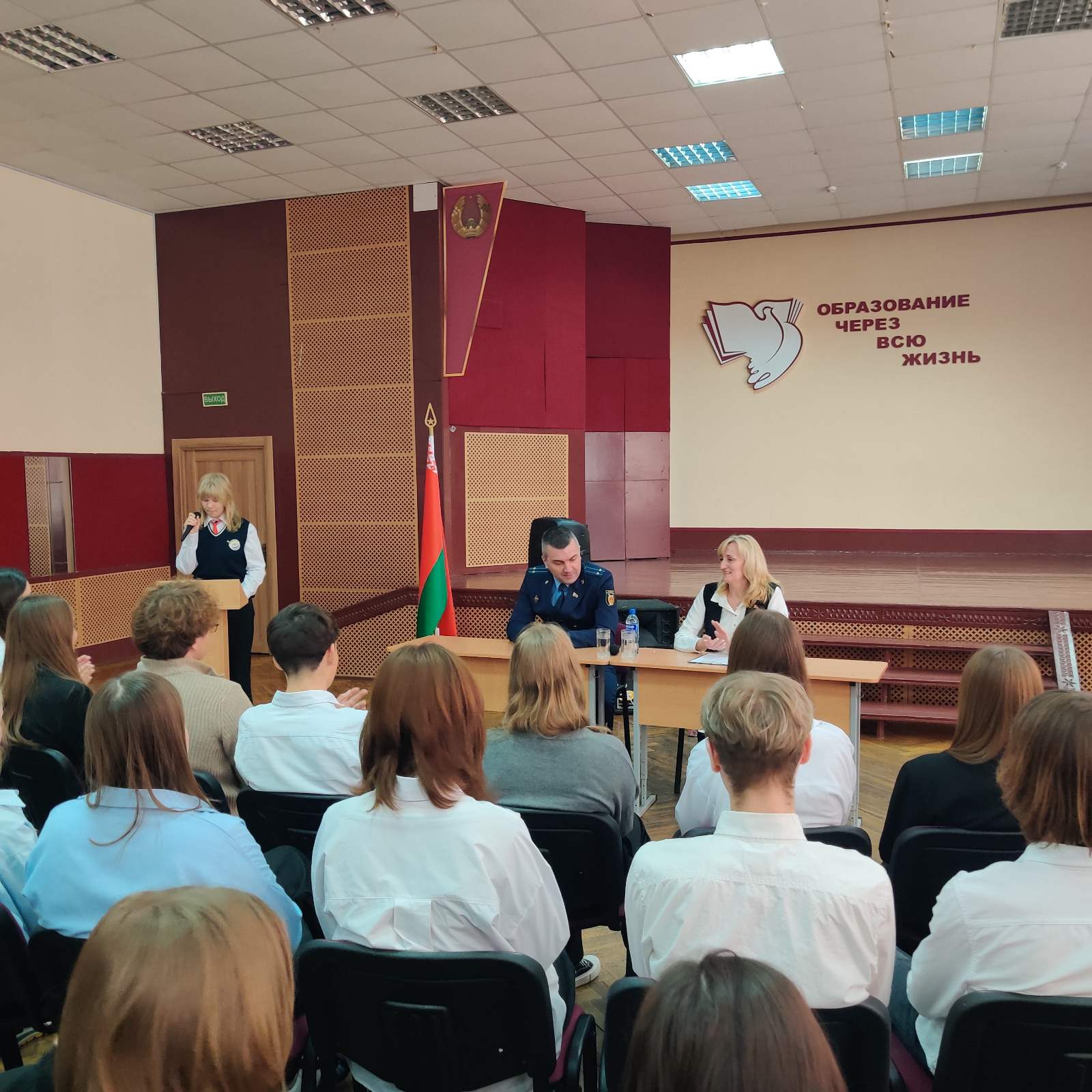27 апреля в нашей гимназии состоялась диалоговая площадка "Закон. Ответственность. Выбор" с участием старшего помощника прокурора города Могилева Бубко Дмитрия Николаевича. Мероприятие было организовано для учащихся 10-х классов и направлено на повышение правовой грамотности подростков, а также на формирование у них ответственного отношения к своим поступкам.
