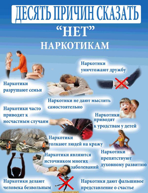 Наркомания — это проблема нынешнего поколения. Помните, что отношение детей к проблеме наркотиков в немалой степени зависит от ваших с ними взаимоотношений. Доброжелательность и поддержка семьи помогают воспитать в детях чувство собственного достоинства, уверенности в себе и способность отстоять своё мнение. Лучшим иммунитетом к наркотикам является оптимистическая, активная, целеустремлённая и конструктивная жизненная позиция.