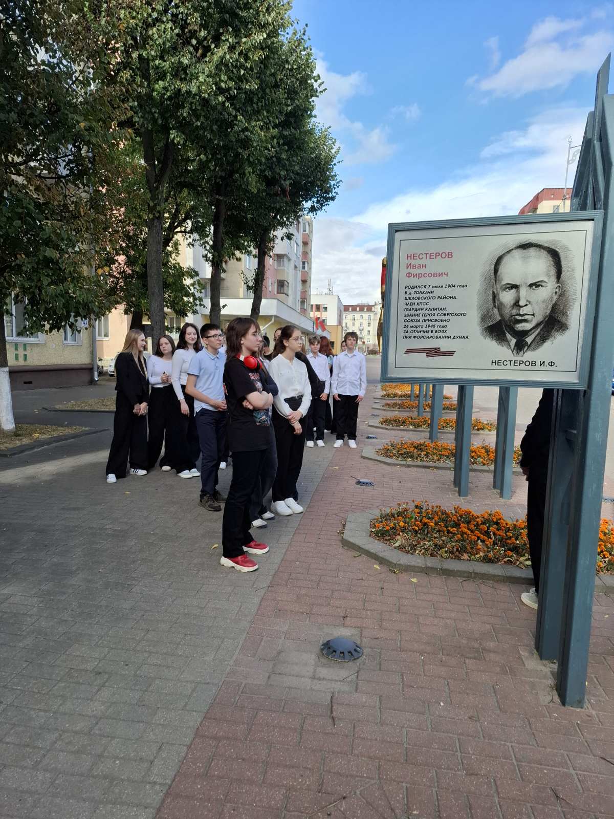 16.09 учащиеся 9В класса совершили выездную экскурсию по маршруту:Оборона города Могилёва.В программе было посещение МК ГАИ, пл.Славы,МК узникам концлагерей, Буйничское поле и музей Славы Могилевщины. День получился очень содержательным и интересным, ребятам всё понравилось. На площади Славы поговорили о традициях памяти и истории города. Буйничское поле произвело сильное впечатление. Экскурсию завершили в музее. Экскурсовод увлёк всех живым рассказом,ребята активно рассматривали экспозиции, делились мыслями и уже планируют прийти сюда с родителями.