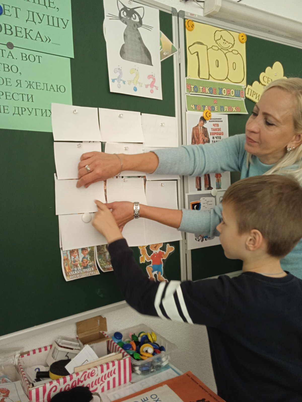 В субботу 4 октября у ребят из 1 "А" класса прошла сюжетная игра "Что такое хорошо и что такое плохо". Гость игры, заведующая библиотекой гимназии Татьяна Анатольевна, познакомила ребят с понятием добро и зло, вместе прочитали одноимённое стихотворение