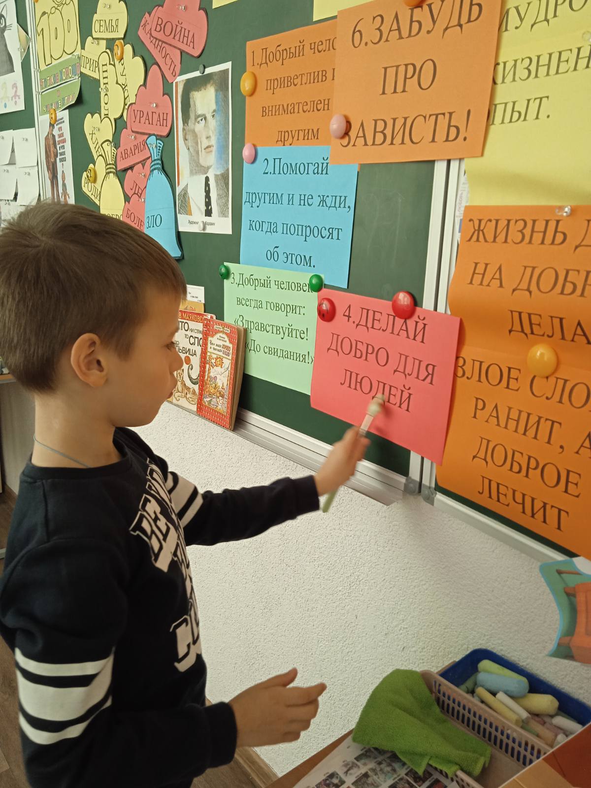 4 октября в 9Б классе прошла беседа на тему: «Нам жизнь дана на добрые дела». Ребята обсудили понятия: добродетель, волонтер, бескорыстность. Обозначили себе добрые дела, такие как: помощь младшим школьникам или воспитанникам дошкольного заведения, помощь пожилым людям, полная ответственность за своих четвероногих питомцев