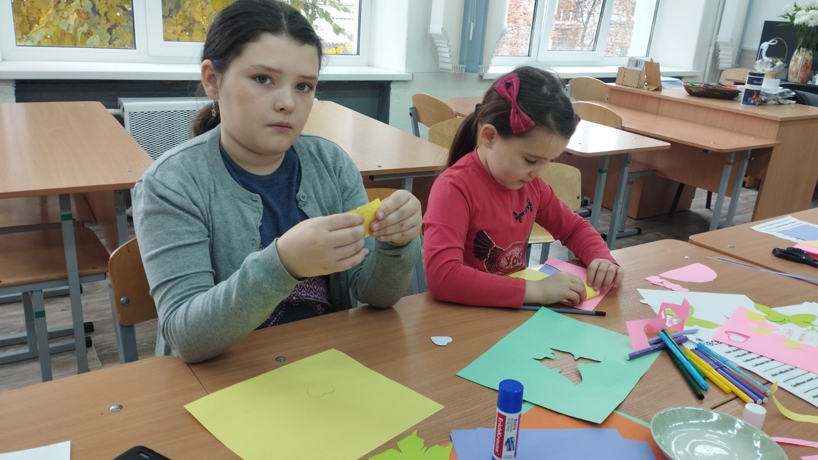 Субботним утром учащиеся 2в класса вместе со своими мамами побывали на мастер-классе " С любовью к маме". Участники сделали поздравительные открытки ко Дню матери.