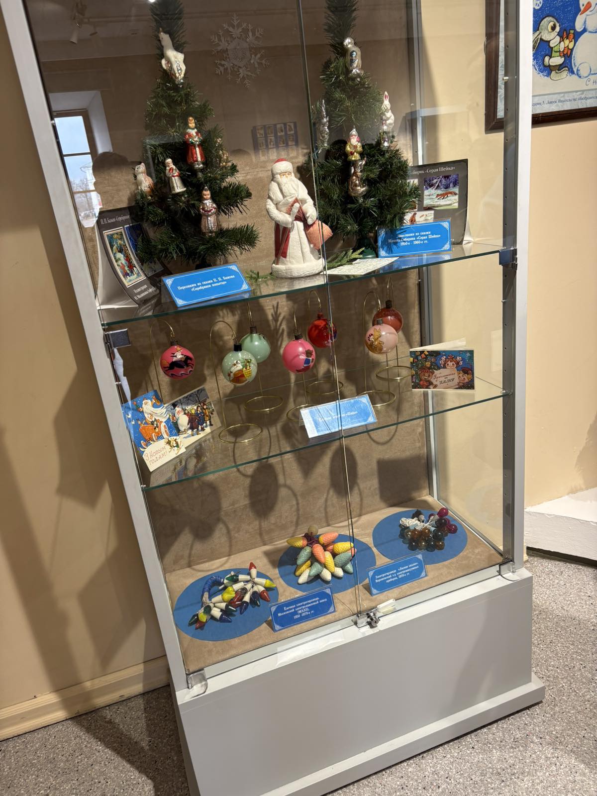 Учащиеся 5 б класса 10 декабря посетили выставку « В блеске елочных огней" в краеведческом музее им. Е Р.Романова. На выставке можно было увидеть игрушки 80-х годов. Коллекция включает гирлянды, игрушки из стекла, ваты , игрушки собраны по тематике: герои сказок, звери, фрукты, животные и многое другое. Побывав на выставке , можно окунуться в годы СССР. Также на выставке можно было написать письмо деду морозу, нарисовать открытку, сделать гирлянду .