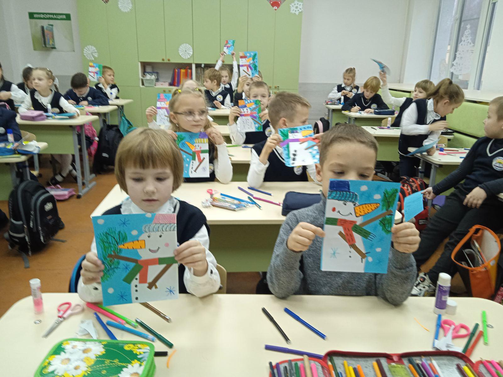 Библиотека гимназии пригласила ребят 1 «А» и 1 «В» классов на литературный час, посвященный произведению В.Ф.Одоевского «Мороз Иванович». Библиотекарь познакомила учащихся со сказкой, предложила ответить на вопросы литературной викторины, вместе прочитали пословицы и поговорки о зиме, а в заключение мероприятия ребята изготовили своими руками поздравительную открытку «Снеговичок».