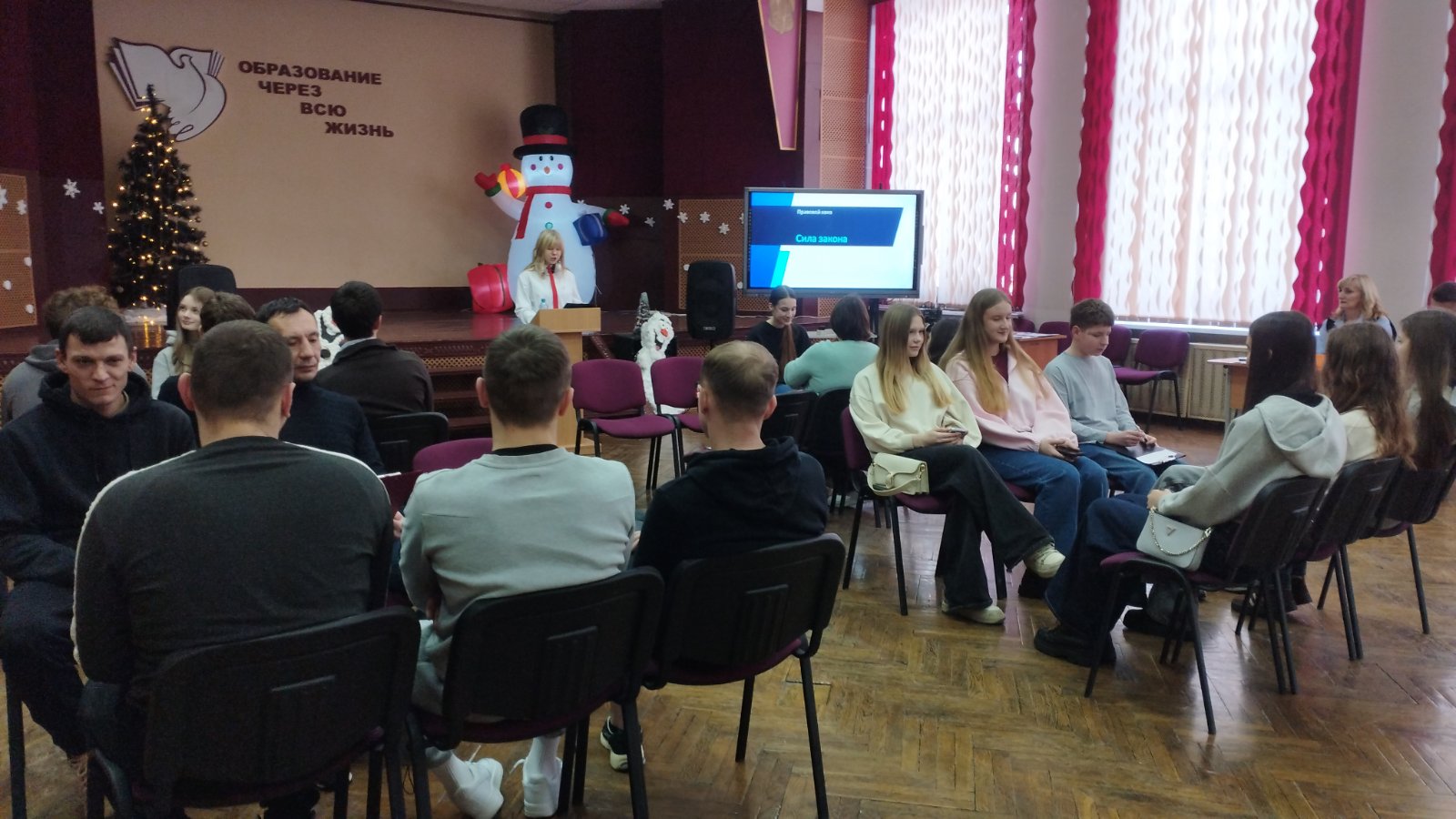 30 декабря в день правовых знаний в государственном учреждении образования «Гимназия №4 г.Могилева» состоялся квиз «Сила закона», в котором приняли участие учащиеся гимназии, средней школы №5 и осужденные исправительного учреждения открытого типа №43. Идея проведения данного мероприятия родилась из желания повысить правовую грамотность, как среди подростков, так и среди осужденных, помочь им лучше понять свои права и обязанности, а также последствия нарушения закона. Мероприятие прошло в атмосфере уважения и открытости. Подростки увидели в осужденных не просто «преступников», а людей со своими историями и возможностью к изменению, получили практические знания о законе, которые помогут им избежать ошибок в будущем.