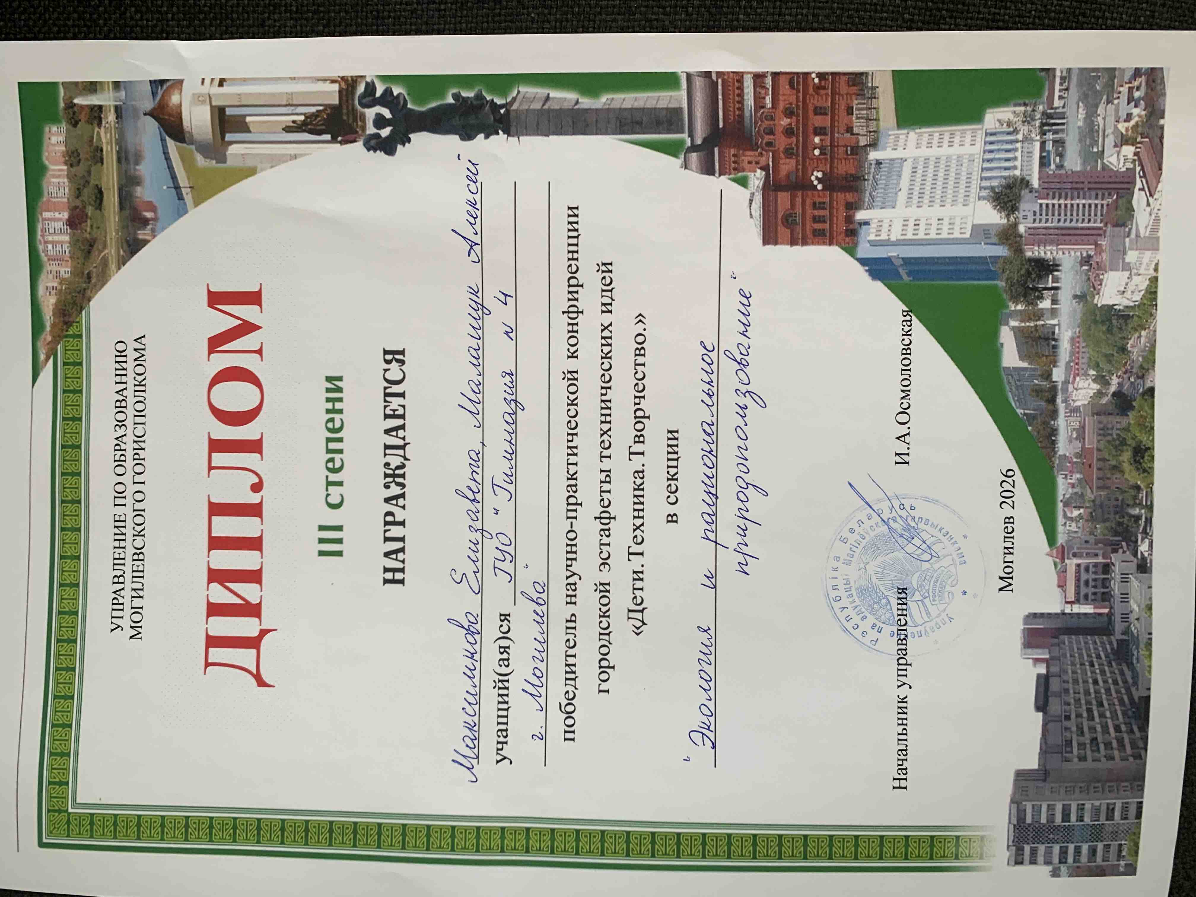 24 января учащиеся гимназии Максимова Елизавета , Малашук Алексей и Слабодчиков Андрей с учителем физики Игнатенко Ольгой Николаевной приняли участие в научно-практической конференции "Дети.Техника.Творчество" в ГУО "Средняя школа №23". По итогам конференции ребята получили дипломы 2 и 3 степени. Поздравляем с достойной победой учащихся и педагога!