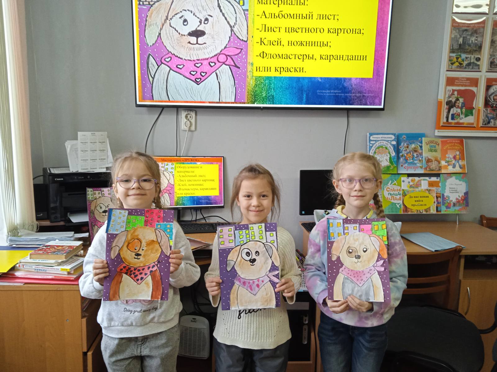 14 февраля с учащимися 1-ых классов в школьной библиотеке Мурзиной Т. А. было проведено литературное путешествие "Четыре лапы, мордочка и хвост". Ребята познакомились с произведениями А. Усачева, стихами про животных Б. Ф. Заходера. На мастер-классе учащиеся нарисовали четвероногих друзей.