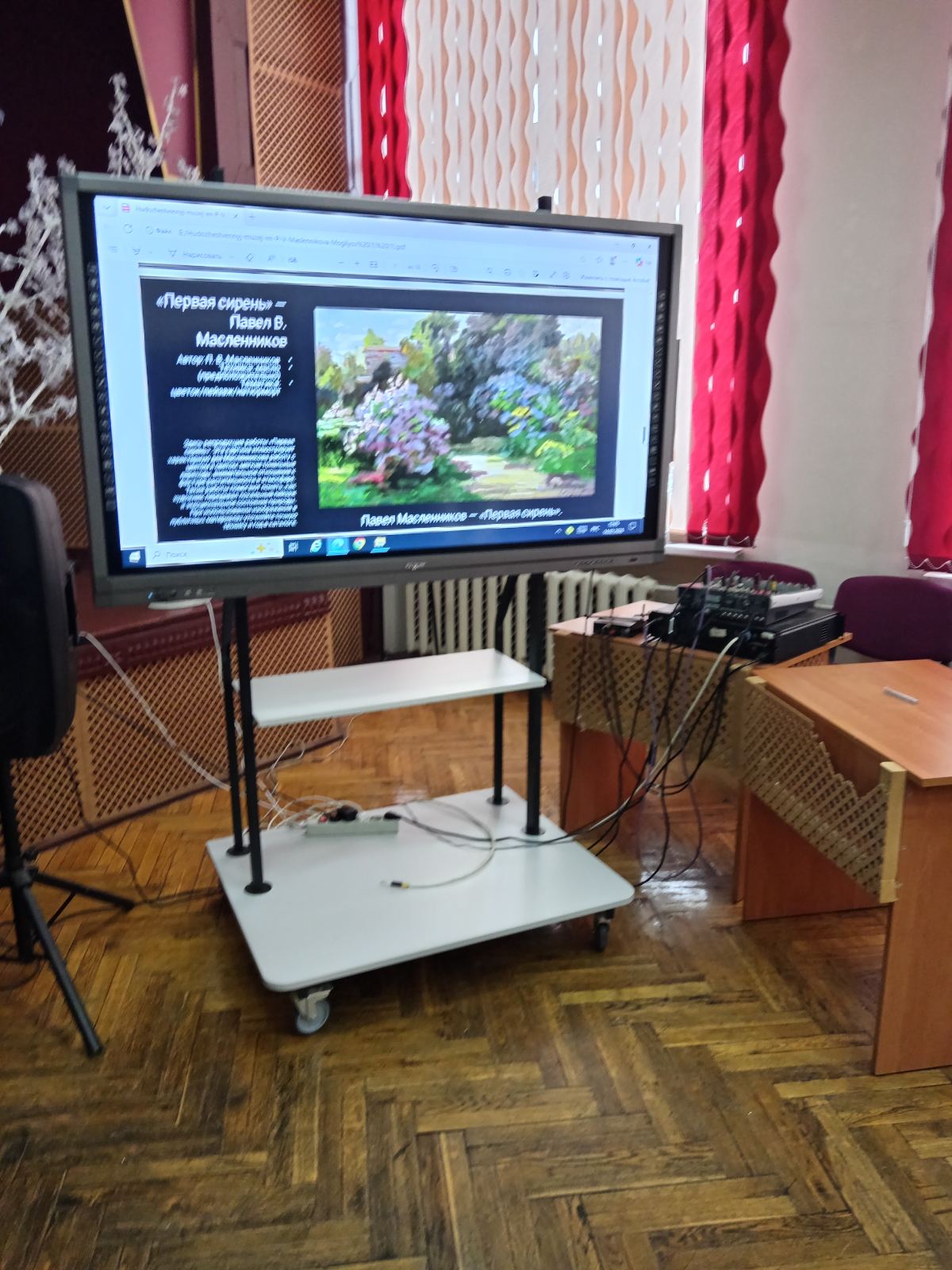В рамках 6 школьного дня для учащихся 5В класса была проведена заочная экскурсия в музей П, Масленникова, так как многие учащиеся болеют.Учащиеся узнали. об истории. музея, его фондах, Было принято решение весной побывать в данном музее. Они познакомились с наиболее известными картинами художника. Учащимся захотелось увидеть эти картины наяву.
