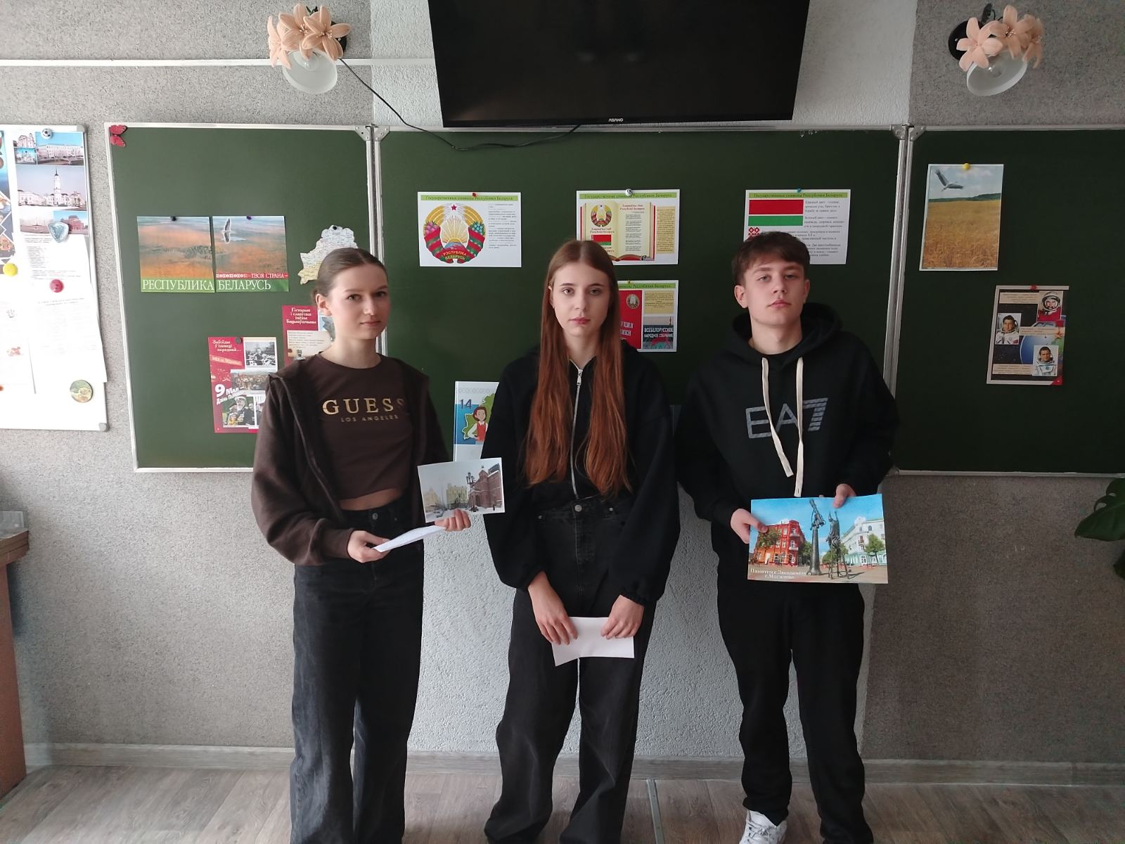 В субботу учащиеся 10б класса провели познавательное мероприятие "Символы нашей страны", на котором не только вспомнили и о государственных символах таких, как герб, гимн , флаг, но и поговорили о замках, исторических местах, животных, птицах, которые могут быть визитной карточкой Беларуси. В завершении мероприятия ребята разработали туристические маршруты для приезжающих с учётом нематериального наследия ЮНЕСКО.