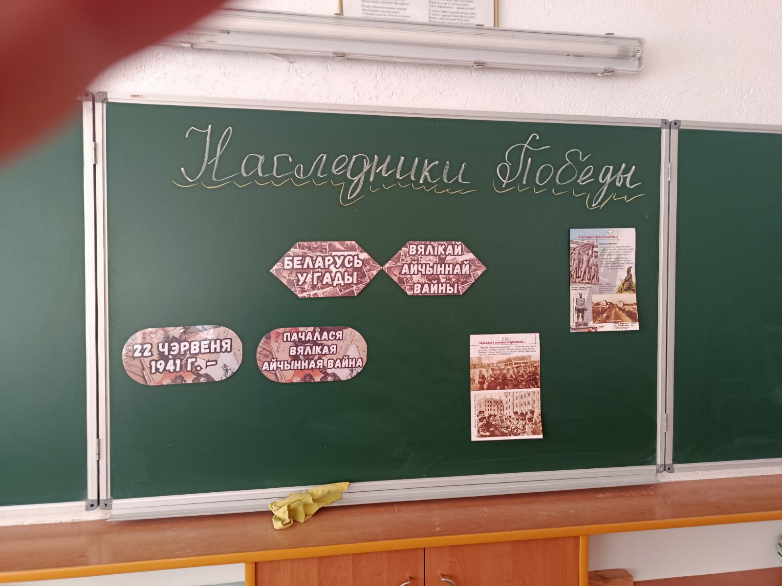 4 апреля для учащихся 5Г класса был проведен круглый стол "Наследники Победы". Я рассказала об основных этапах Великой Отечественной войны, о знаменитых белорусам, совершивших свой подвиг, таких, как Петр Гаврилов, Синай Шмырев, дед Талаш и других. Рассказывала также и про оборону Могилёва в 1941 году, о знаменитом комбриге Романове.