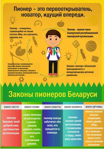 Девиз: ОО «БРПО»: Пионер! К делам на благо Родины, к добру и справедливости будь готов! Ответ: Всегда готов!