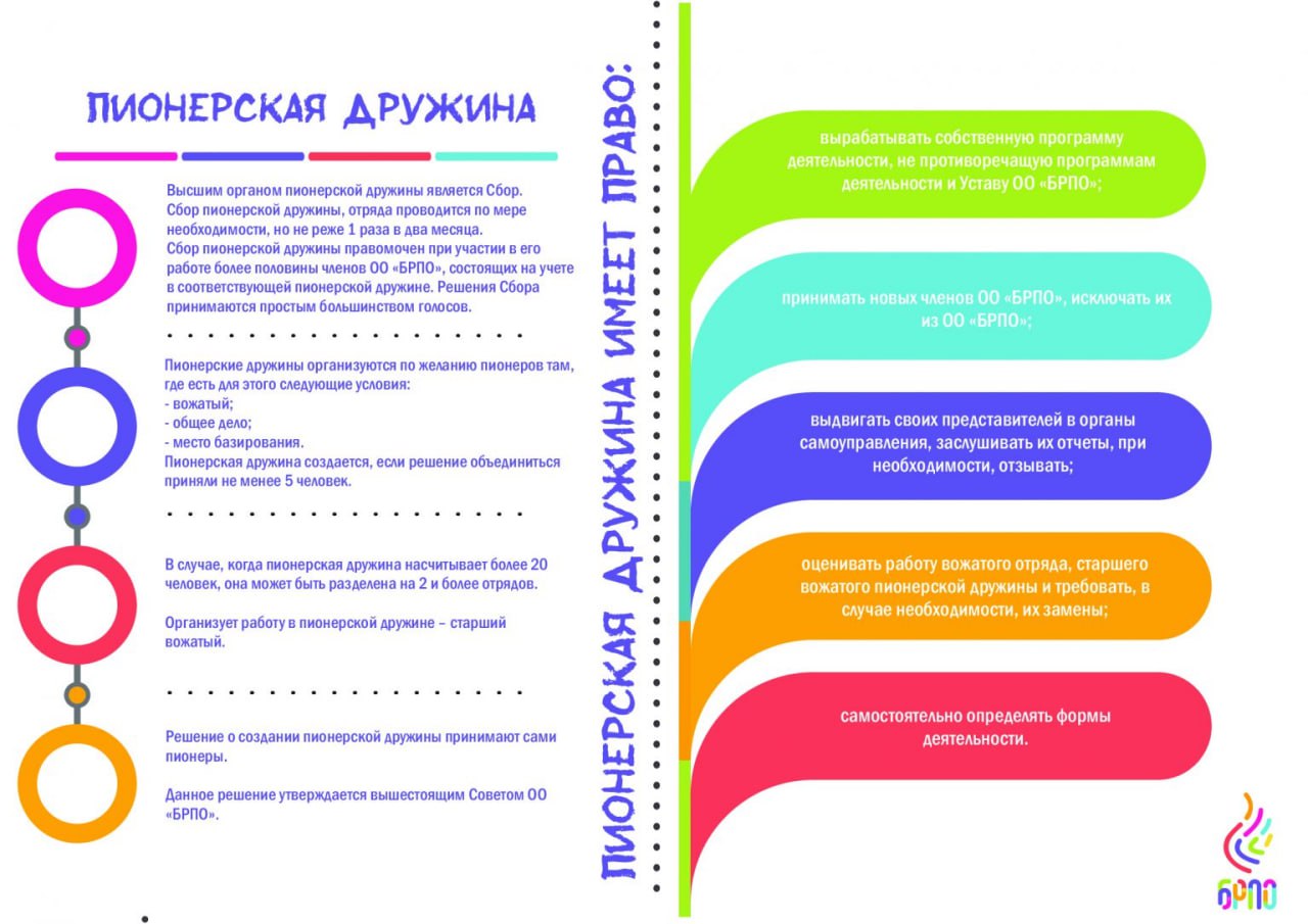 ОО «БРПО» – самостоятельное, добровольное, общественное, многонациональное объединение детей, подростков и взрослых, ориентированное на общечеловеческие ценности, представляющее и защищающее интересы и права своих членов. Свою деятельность