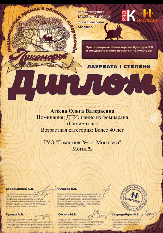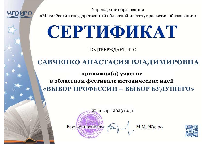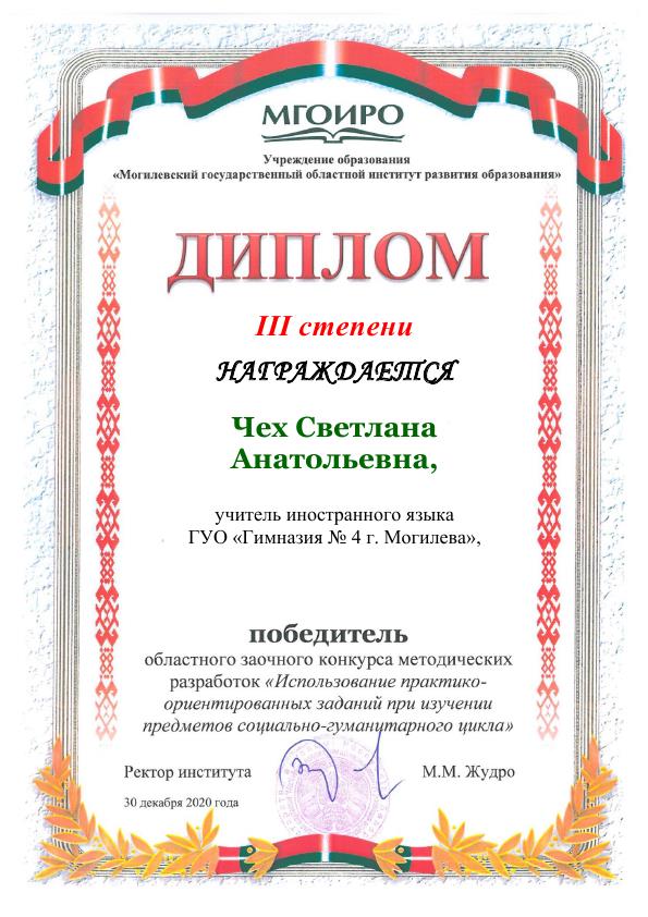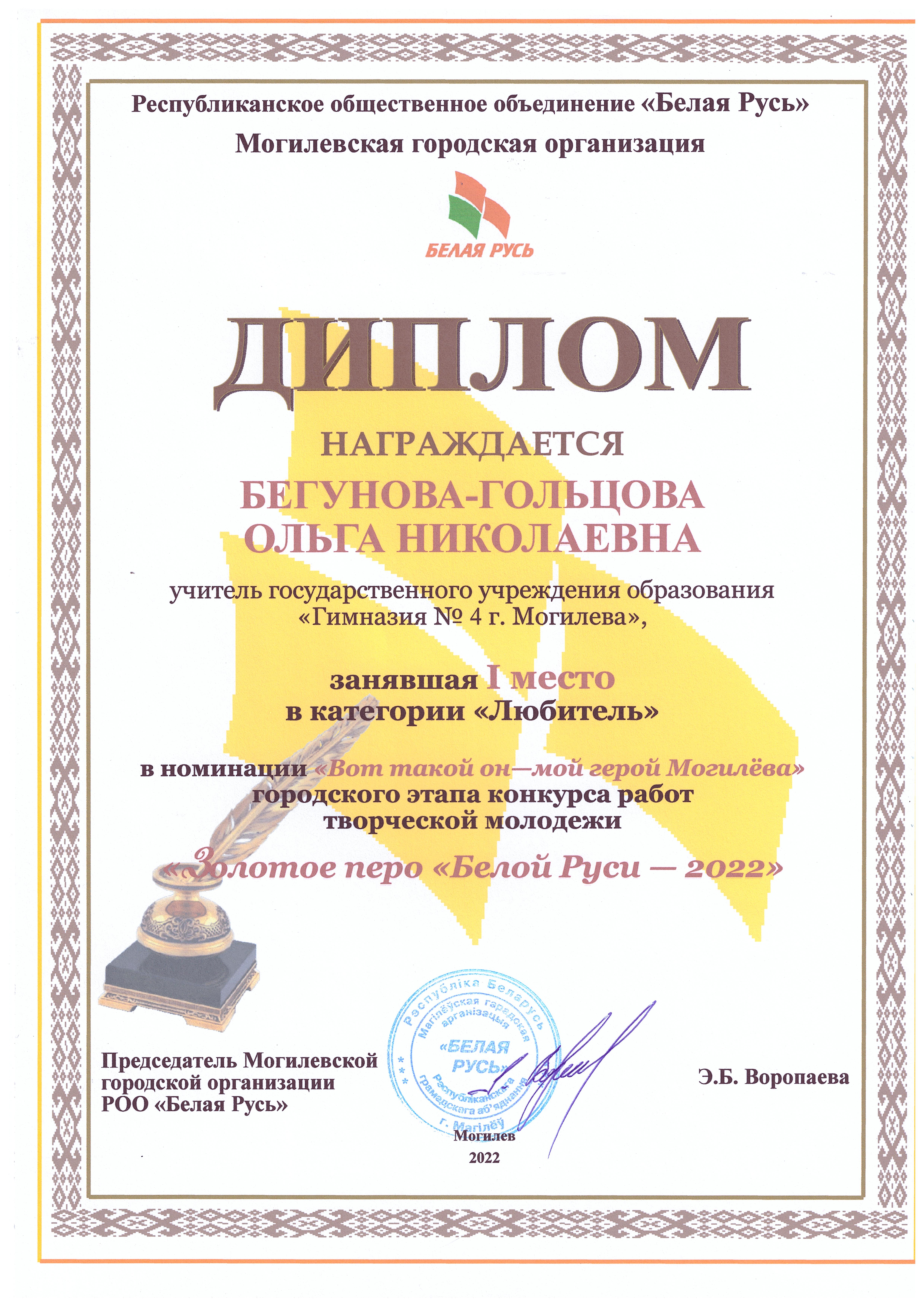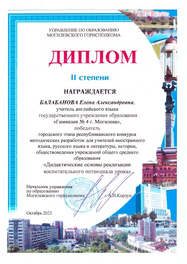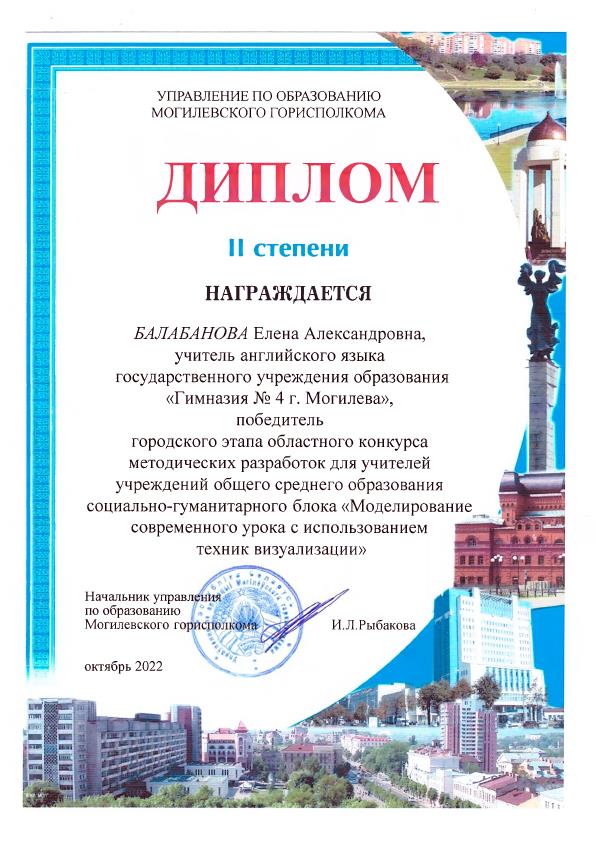 Бакалавр Почетная грамота управления по образованию Могилевского горисполкома |