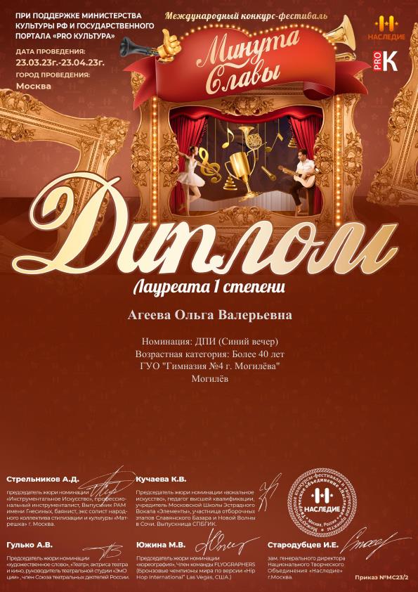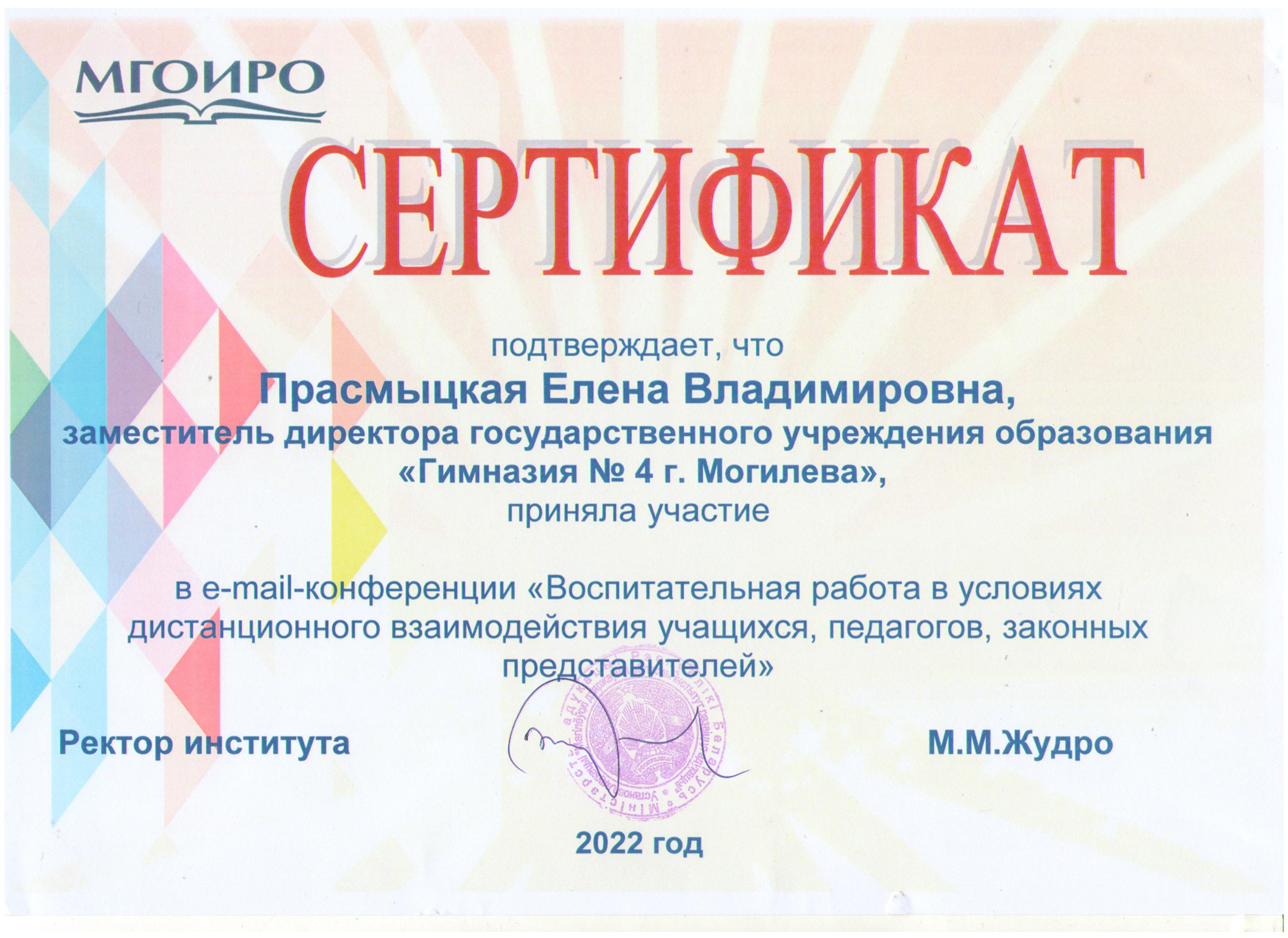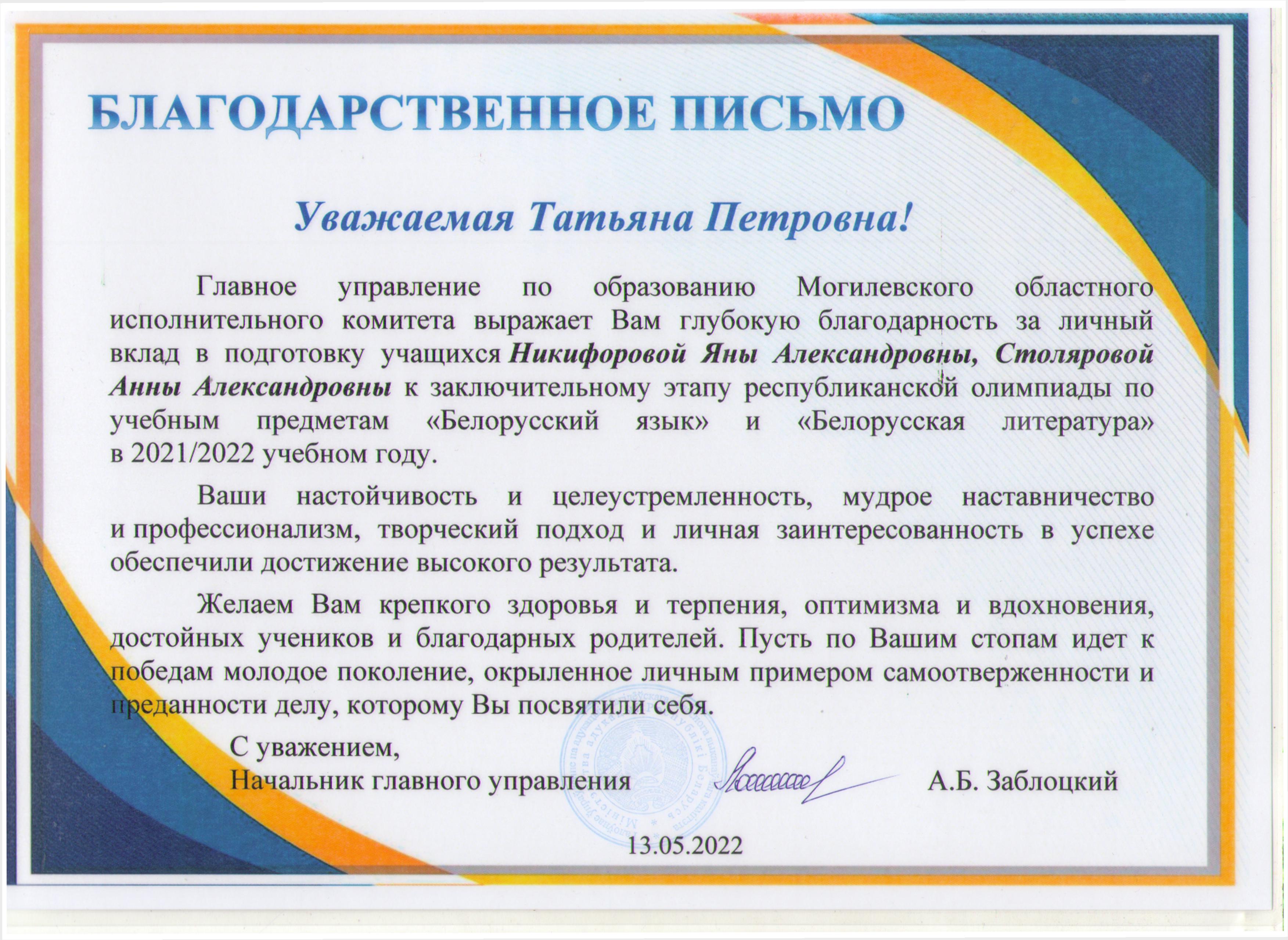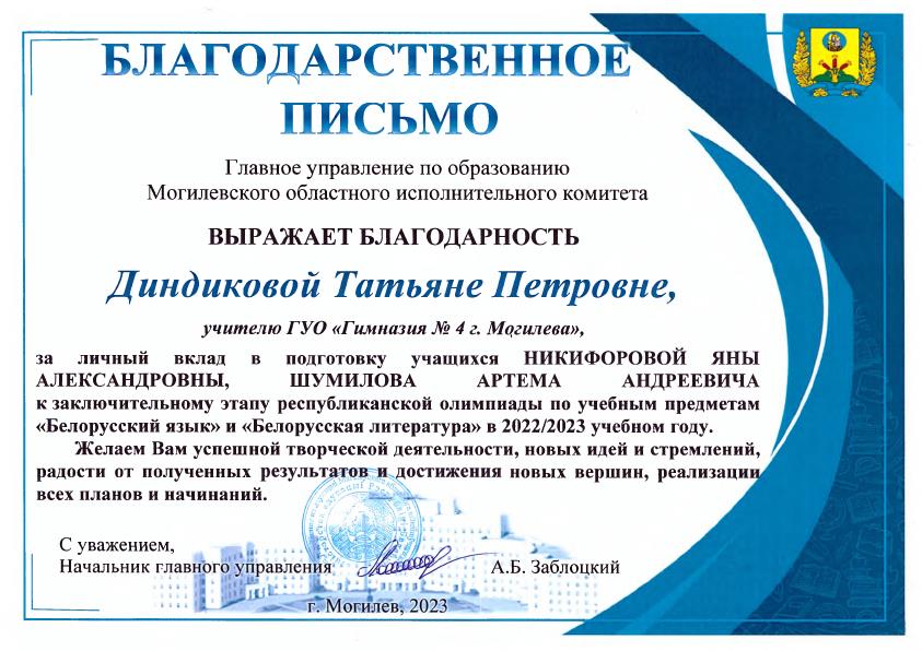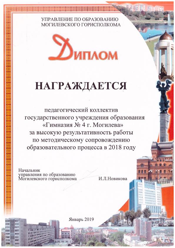 Почетная грамота управления образования, спорта и туризма Могилевского горисполкома |